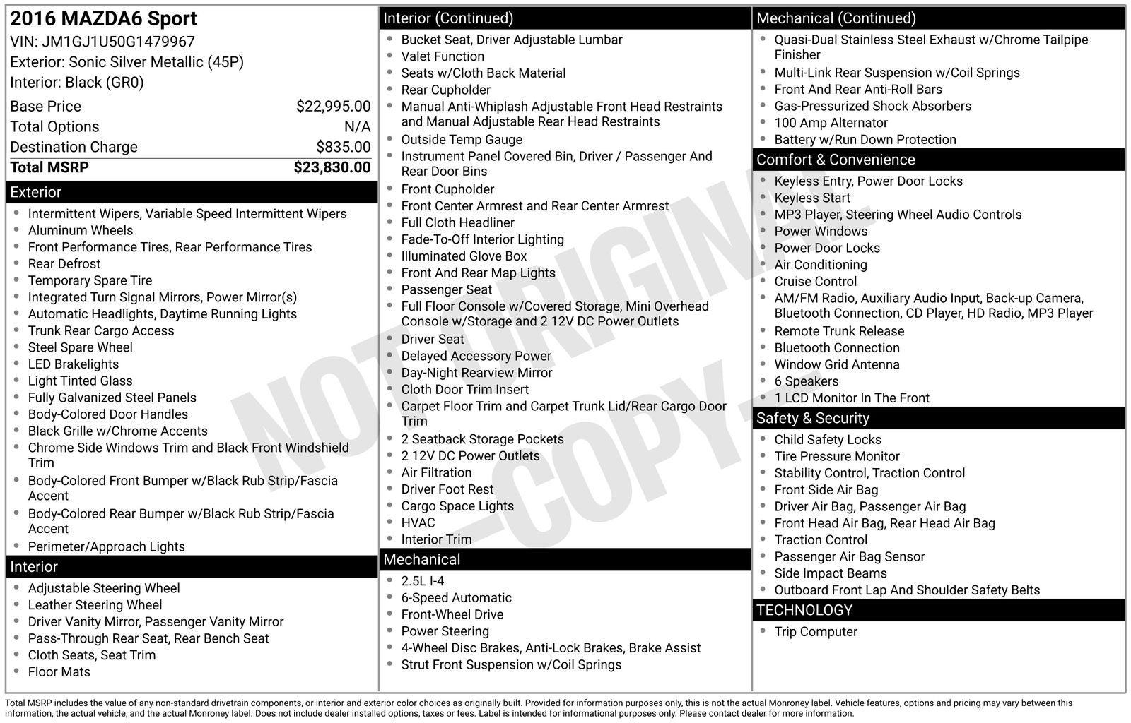 - Vehicle Name: Mazda Mazda6