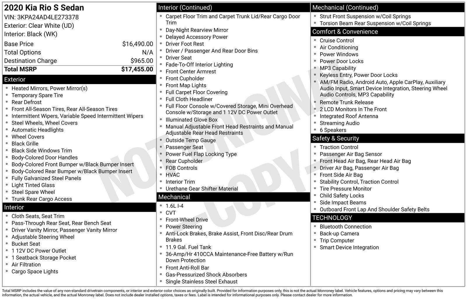 2020 Kia Rio S